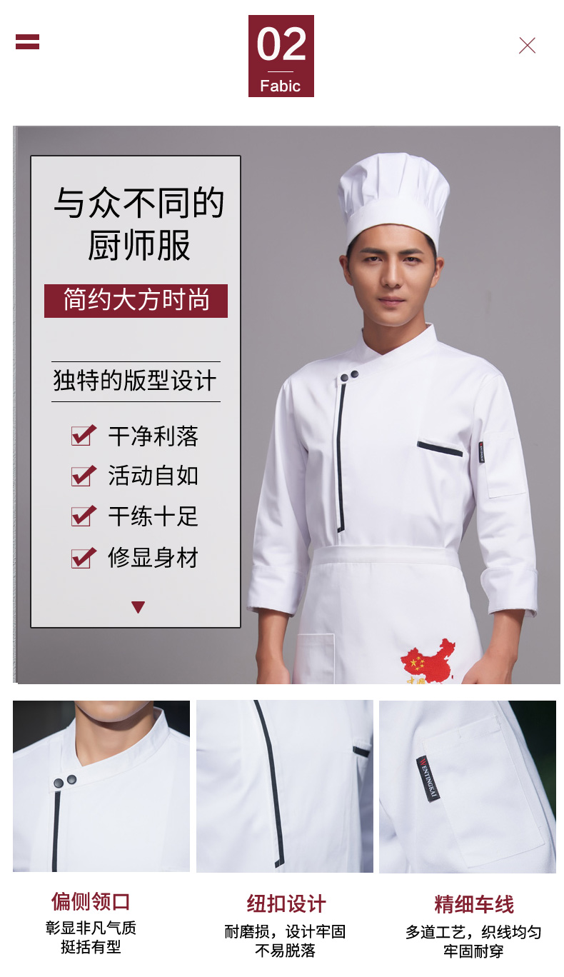 中國(guó)廚房工作服長(zhǎng)袖廚師服