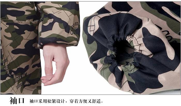 迷彩大褂工作服袖口,采用松緊設(shè)計(jì),穿著方便又舒適。
