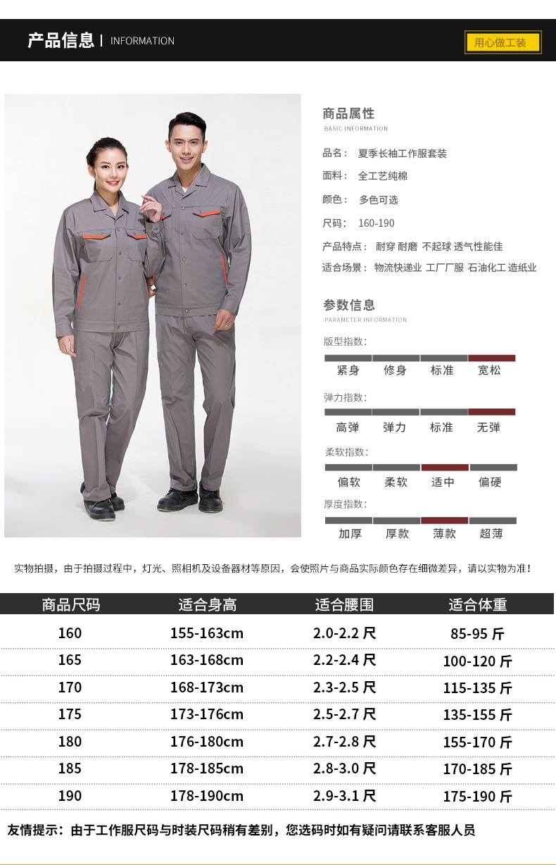 夏季純棉長袖工作服舒適透氣款,薄款,不掉色、不縮水,定染面料厚款,夏長袖防火、防靜電